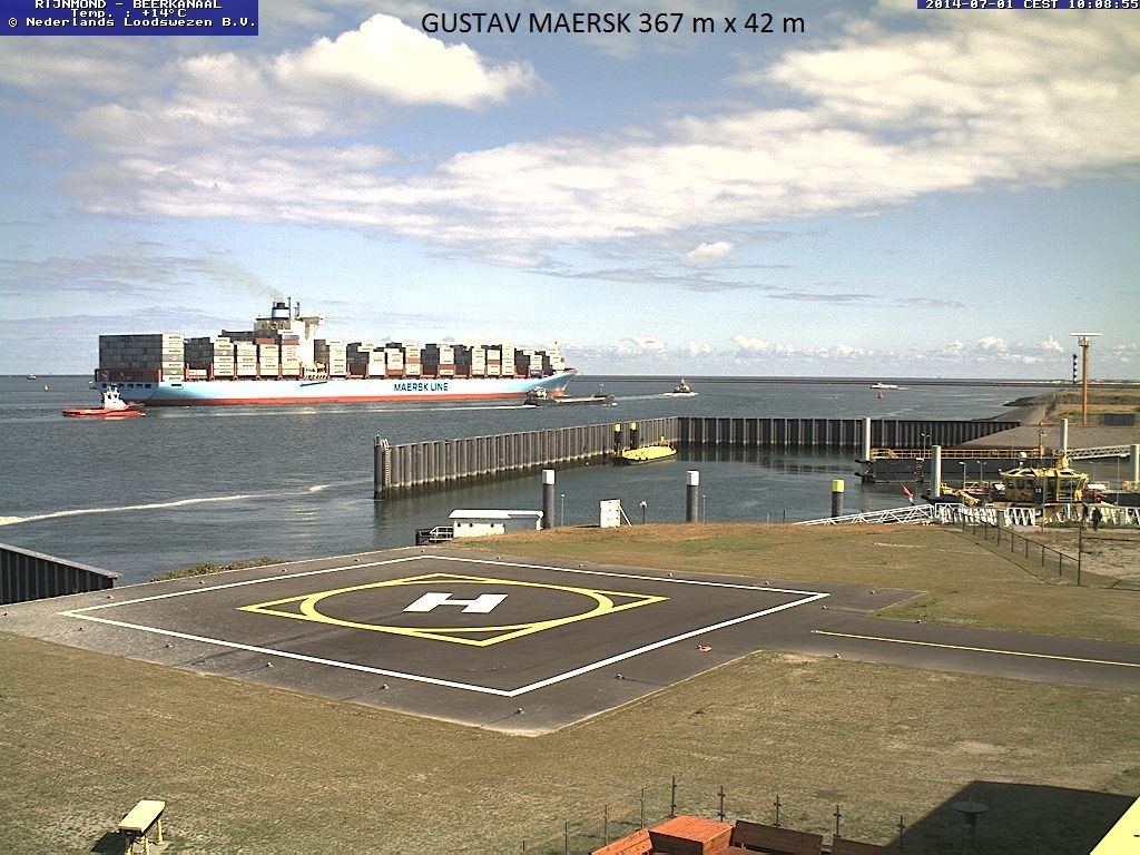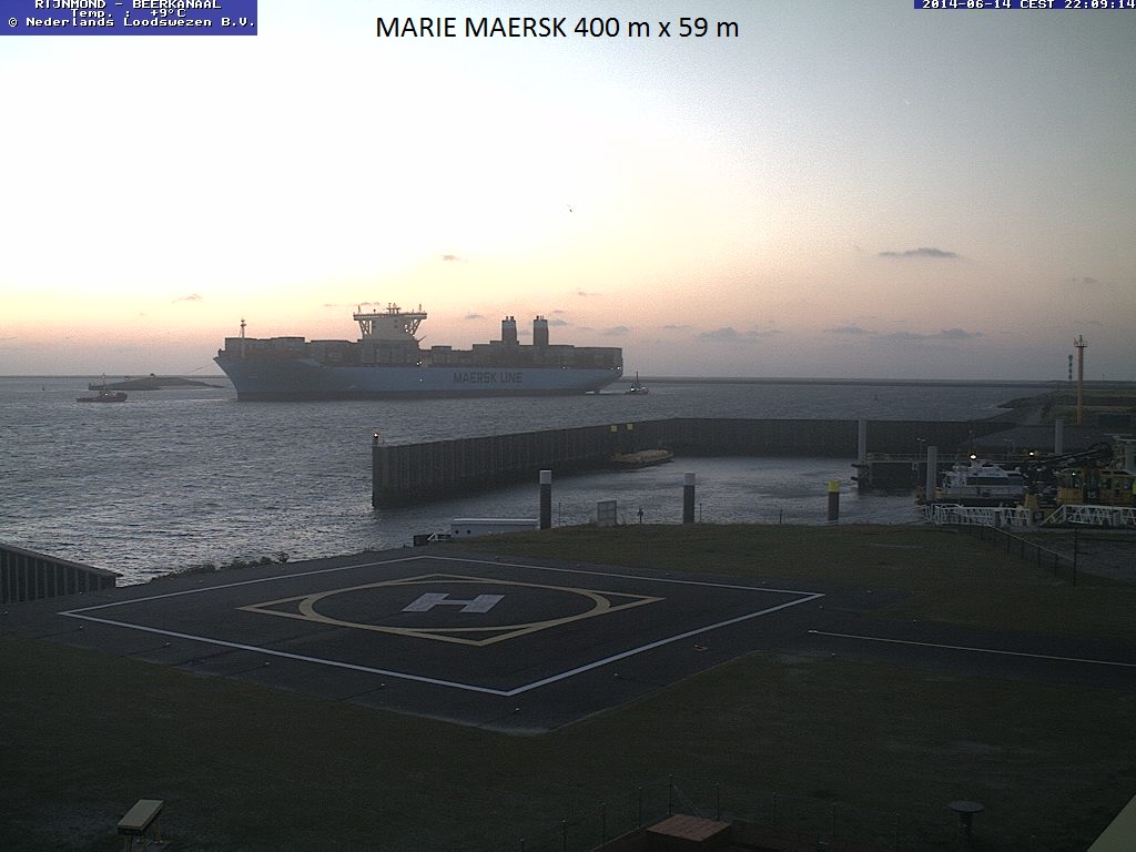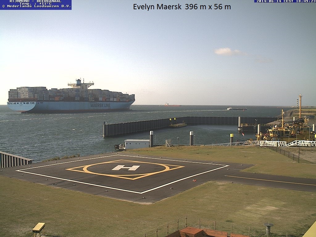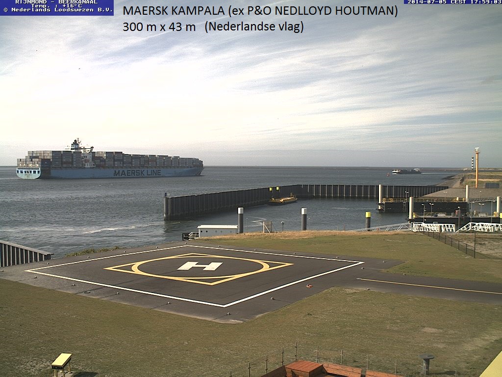 Vanaf de webcam van het Neder4lands Loodswezen ziet u hier een prachtige serie containerschepen.