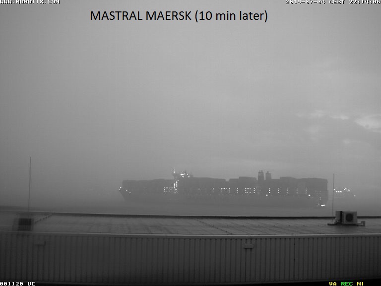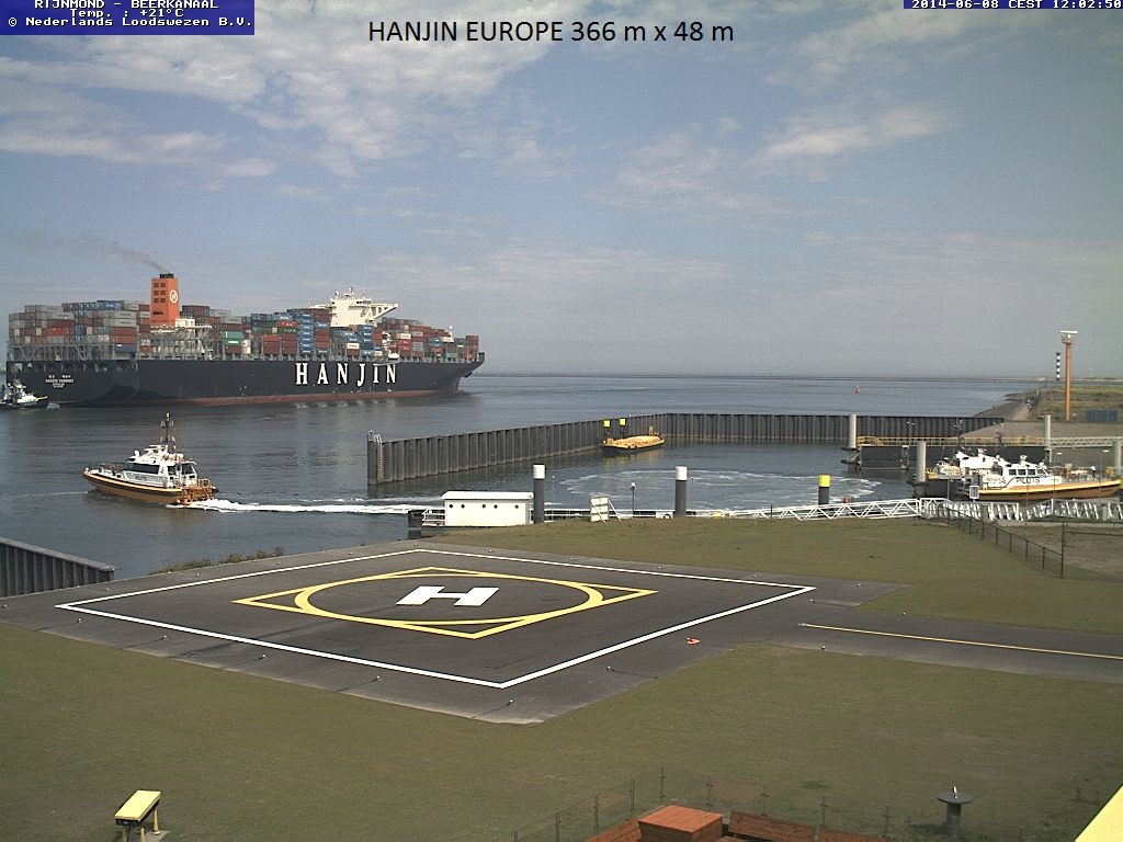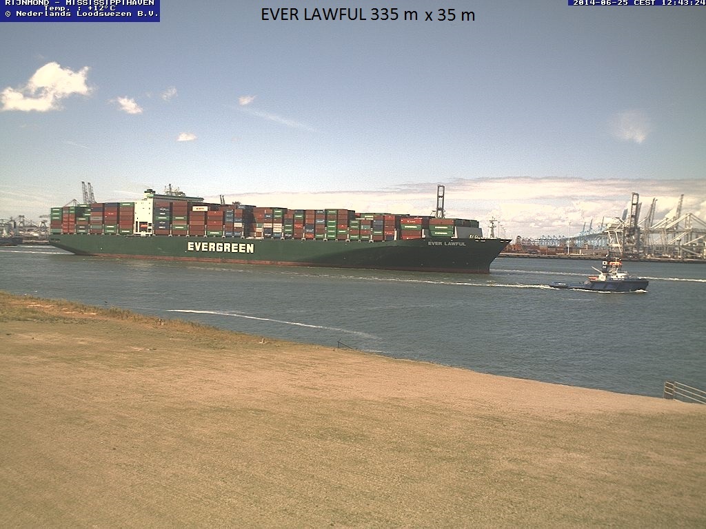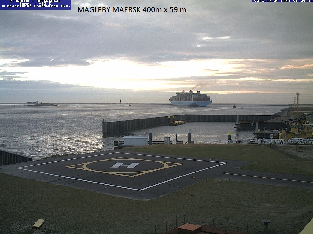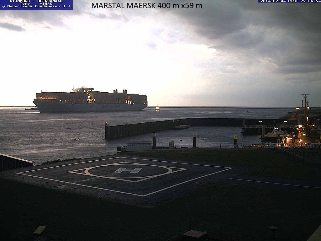 Vanaf de webcam van het Neder4lands Loodswezen ziet u hier een prachtige serie containerschepen.