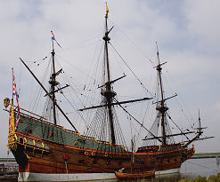 Replica van het spiegel retourschip "Batavia" bouwjaar 1628,
